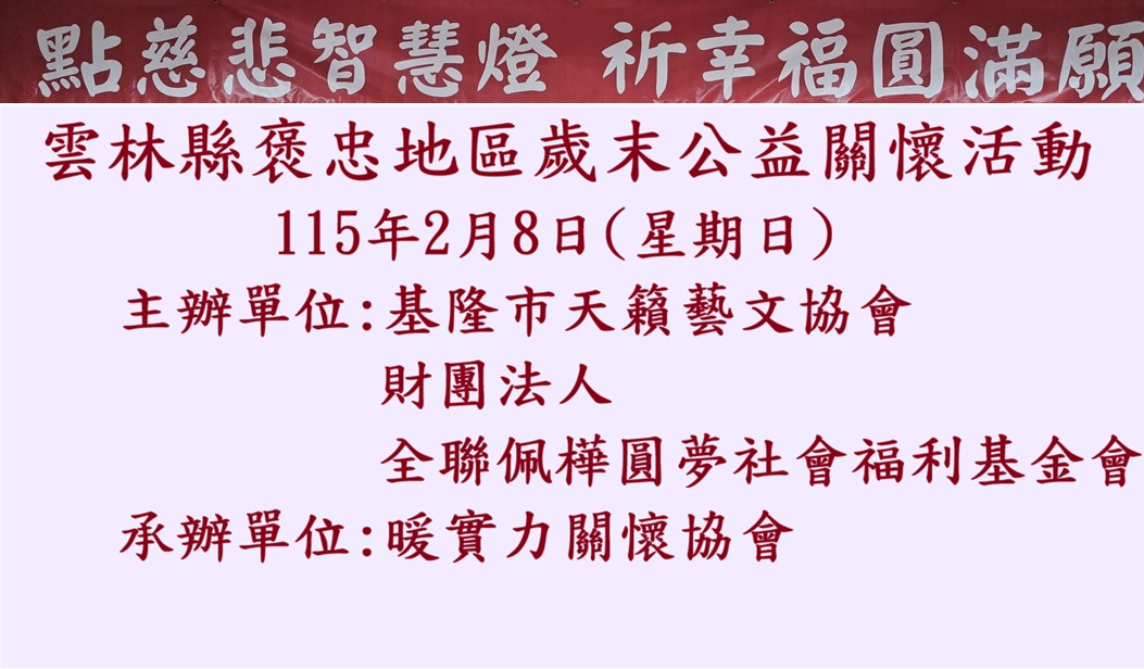 點慈悲智慧燈 祈幸福圓滿願 雲林褒忠地區115年度 ~歲末關懷活動~